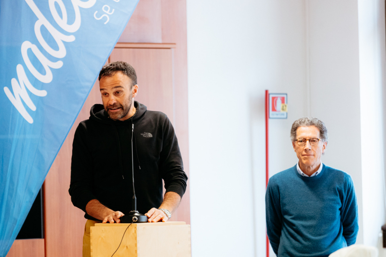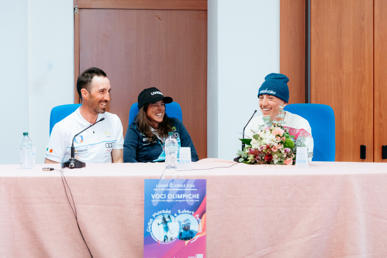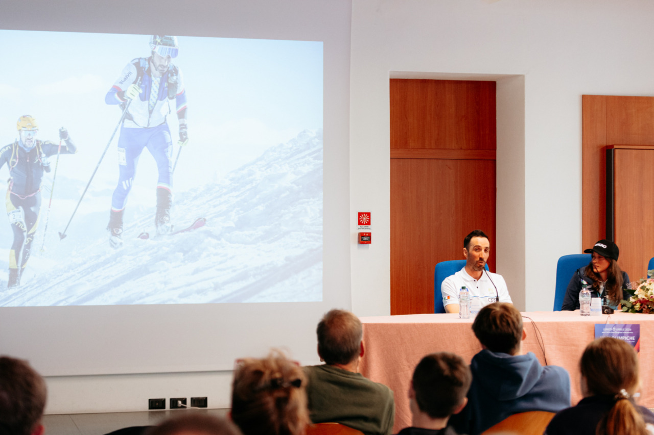La sala gremita di pubblico ha applaudito a lungo e molto spesso gli interventi degli atleti, e le immagini spettacolari delle principali competizioni, dalle gare sprint alle mixed relay – discipline presenti nel programma olimpico di Milano-Cortina – fino alle grandi classiche di lunga distanza, come l’Adamello Ski Raid e il Trofeo Mezzalama, quest’ultimo vinto nel 2025 dalla coppia Robert Antonioli – Michele Boscacci. Sul palco sono intervenuti anche Alex Vavassori – giovane promessa dello sci alpinismo Ambassador di Madesimo, già tra i grandi protagonisti della disciplina a livello giovanile – e Ivan Murada, padre di Giulia, ex atleta e oggi allenatore di alto livello, nonché figura chiave nella crescita di numerosi campioni italiani.
