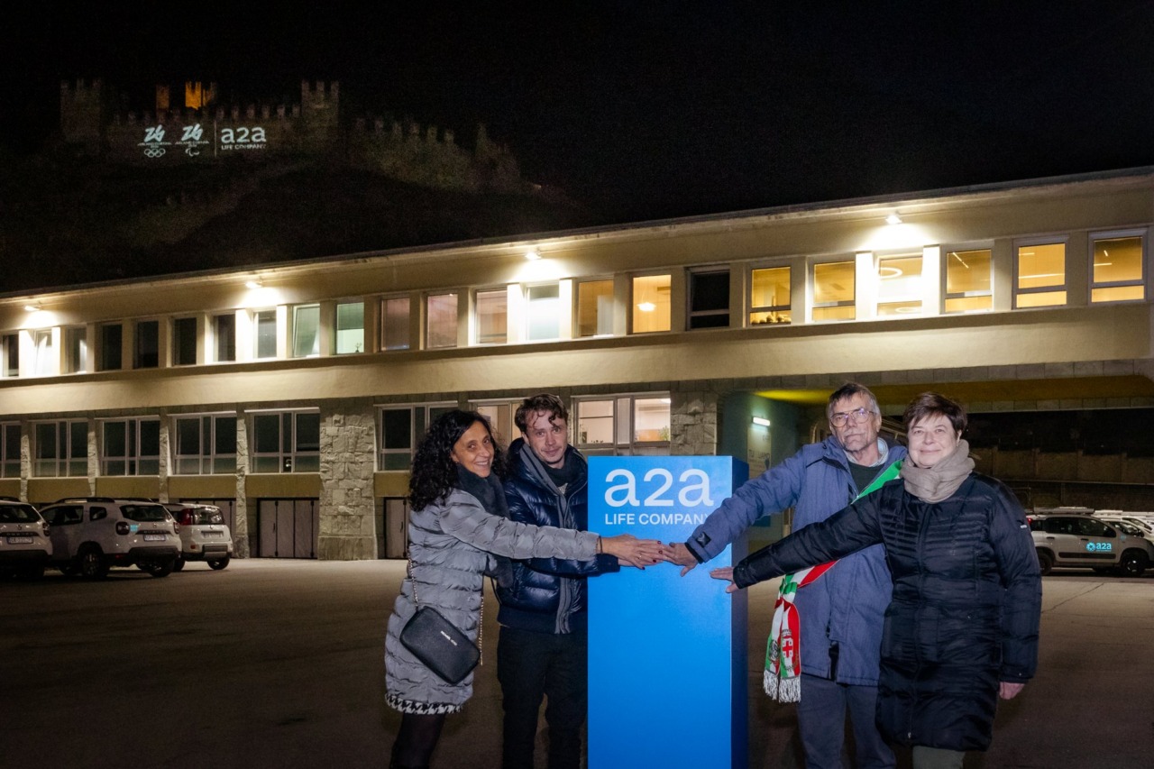L’attivazione dei loghi proiettati sulle mura del Castello si è tenuta questa sera alla presenza del sindaco di Grosio, Gian Antonio Pini, del Presidente del Parco delle Incisioni Rupestri di Grosio e Grosotto, Andrea Modonesi e della Presidente del consorzio turistico Media Valtellina Marcella Pini, ed è partita simbolicamente dalla sede A2A di Grosio, ai piedi del Dosso dei Castelli. Qui, dove A2A è da lungo tempo una presenza solida, è stata avviata la proiezione dei loghi, unendo simbolicamente storia e sport, territorio e futuro.