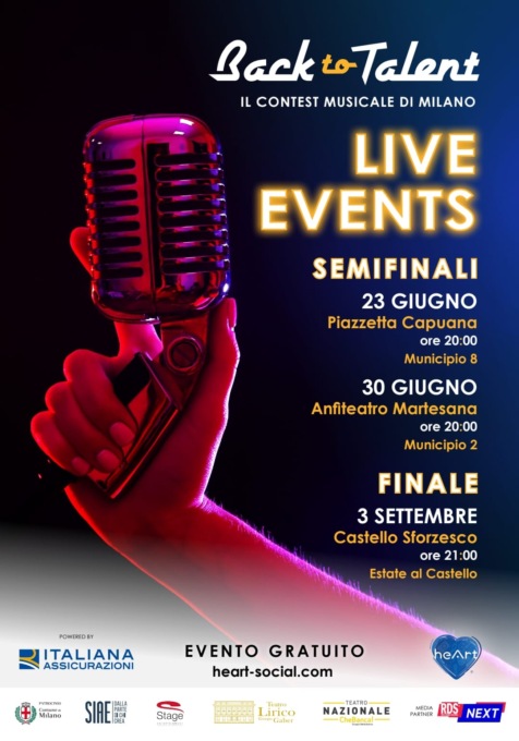 Sono 40 i giovani artisti milanesi che si sfideranno il 23 e il 30 giugno per accedere alle finali di ‘Back to talent’ il nuovo contest musicale che, sotto la direzione artistica di J-Ax e in collaborazione con l’Amministrazione comunale, ha come obiettivo quello di scoprire voci nuove e aspiranti cantanti coinvolgendo gli 88 quartieri di Milano. A coordinare il progetto Matteo Forte, direttore dei teatri Lirico e Nazionale e ‘ideatore’ della piattaforma-social ‘heArt’ vetrina multimediale aperta a ogni forma d’arte.