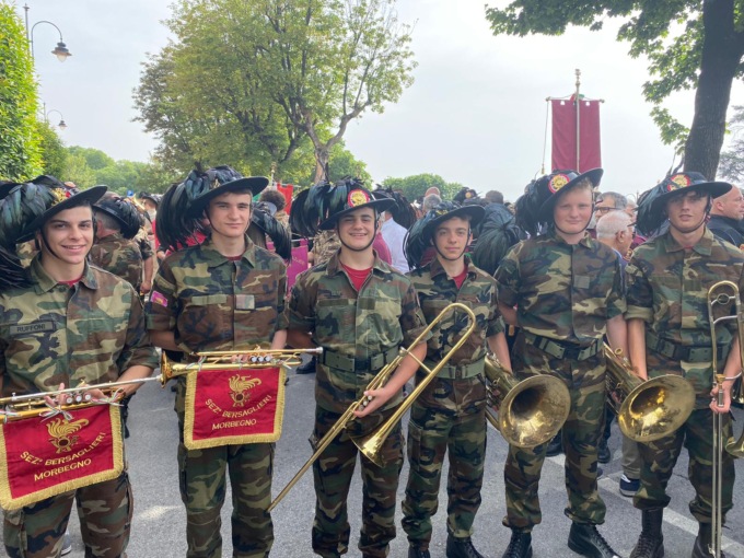 “Si nota con un certo stupore – spiegano i partecipanti valtellinesi – che sono molti i giovani a cui piace suonare in Fanfara, indossare con orgoglio la divisa militare ed il mitico Cappello Piumato con le effigi del Corpo dei Bersaglieri d’Italia e fare propria la disciplina e l’addestramento formale che sono necessariamente richiesti. A questo proposito, ben sei ragazzi da poco entrati a far parte della Fanfara morbegnese hanno ricevuto, in occasione di questo raduno, il “Battesimo della Corsa”. Si auspica che ciò sia preludio all’ingresso di nuove leve per rinforzare le fila della Fanfara per raggiungere sempre più ambiti traguardi Se da un lato vi sono queste nuove leve, dall’altro vi è il Bersagliere Roberto Salvi, classe 1947, unico componente che ancora suona nella Fanfara dal lontano 1972, anno della sua costituzione”.