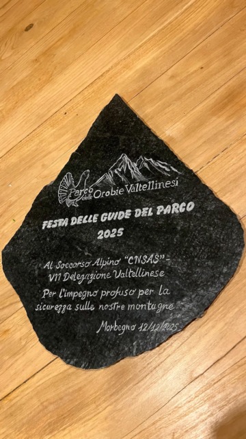 A seguire si è svolta la consegna ufficiale del riconoscimento, affidata al presidente del Parco delle Orobie Valtellinesi, Marco Ioli. Per il CNSAS erano presenti il capostazione di Morbegno, Luca De Bianchi, insieme a otto tecnici della Stazione, a testimonianza del lavoro di squadra che caratterizza l’attività del Soccorso alpino. Sulla targa consegnata era incisa la motivazione: