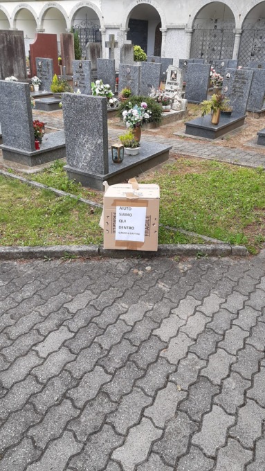 Uno scatolone di cartone abbandonato tra le tombe del cimitero. E sopra una scritta: «Aiuto siamo qui dentro. Siamo sei gattini». E sul lato del contenitore qualche buco per consentire ai micetti di respirare.
