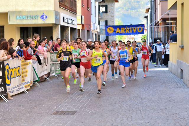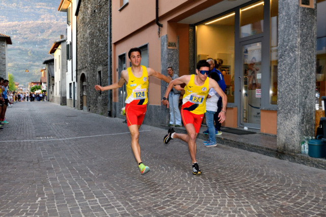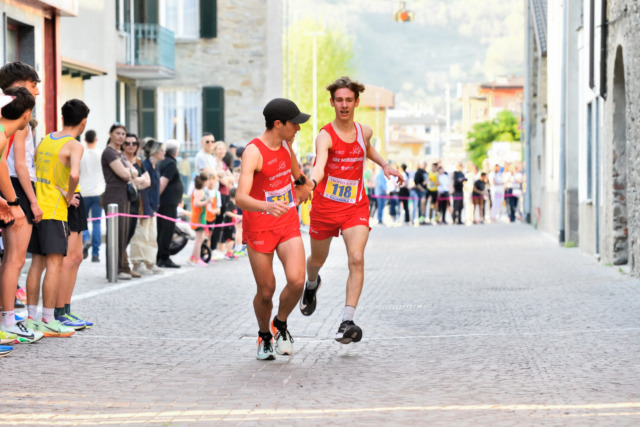 La ciliegina sulla torta arriva nella gara finale junior, promesse e senior maschili, sempre sul giro cittadino di 1830 metri. I favoriti della vigilia dell’Atletica Valle Brembana non solo dominano la gara, ma ne infrangono pure i record. Il malenco Matteo Bardea in prima frazione corre in 4’53”, secondo nella storia di questa gara a scendere sotto i 5 minuti (in precedenza ci riuscì solo Cristian Menghi nel 2022 con 4’58”), passa il testimone a Mattia Adamoli che ferma il cronometro dopo 10’05”, nuovo record della gara che migliora il 10’14” dei gemelli Steffannoni siglato nel 2024. Alle spalle dei vincitori, Gabriele Sutti (GS Valgerola) e Stefano Orio (GP Santi) cambiano spalla a spalla, ma in seconda frazione il GP Santi schiera il forte Daniele Molatore (reduce dal titolo regionale nei 10000 metri con il personal best di 29’51”60) e mette in cassaforte la medaglia d’argento (tempo della staffetta 10’15”). Brava la squadra juniores del GS Valgerola a conquistare il bronzo con Mattia Sutti in seconda frazione (tempo della staffetta 10’36”). Completano la top five il GP Talamona (Mauro e Tommaso Caneva in 10’52”) e l’ADM Ponte (Patrick Del Dot e Davide Cardoni in 10’52”).