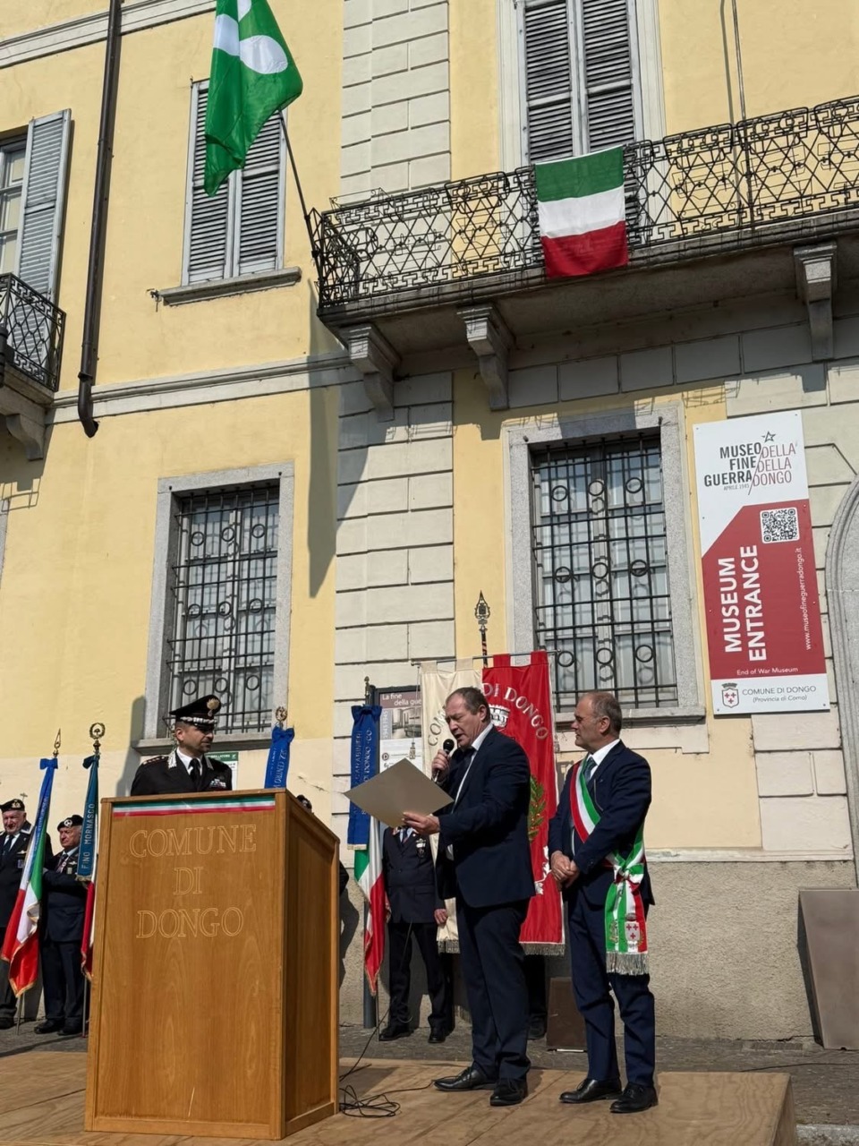 Le celebrazioni sono state organizzate in collaborazione con il Comando provinciale del Carabinieri di Como e con il patrocinio del Consiglio Regionale di Regione Lombardia, la provincia di Como, l’associazione nazionale dei Carabinieri, l’Associazione nazionale dei partigiani d’Italia, la rete museale dei Paesaggi della memoria, la sezione del gruppo alpini di Dongo, l’associazione nazionale dei reduci della prigionia. Il primo intervento della cerimonia evocativa è stato quello del Prefetto di Como, Corrado Conforto Galli che ha sottolineato come “fare memoria è un atto di responsabilità civile fondamentale per educare i giovani alla costruzione di una società migliore”. Il generale Antonino Neosi dell’Arma dei Carabinieri – che sarà anche relatore nel pomeriggio del convegno storico – ha poi sottolineato “la forza del legame tra carabinieri, sempre presenti sul territorio, e la cittadinanza durante tutta la storia italiana”. Il Colonnello Francesco Falcone, comandante provinciale dei Carabinieri di Como ha invece ricordato come “molti Carabinieri parteciparono alla resistenza, restando al loro posto per proteggere la popolazione anche nei momenti di estrema difficoltà. Una missione che svolgono ancora oggi” e ha citato la figura di Salvo d’acquisto che si autoaccusò di essere l’ideatore di un attentato che non aveva commesso per salvare 22 civili. Alessandro Fermi, assessore di Regione Lombardia- ha esaltato la figura dei Carabinieri “quale colonna portante della storia d’Italia e a cui dare quotidianamente riconoscenza” per poi sottolineare “il grande senso di comunità che contraddistingue Dongo e alto lago con le associazioni del territorio sempre disponibili senza chiedere nulla in cambio”. Il Presidente della Provincia, Fiorenzo Bongiasca ha rimarcato ancora l’importanza storica di Dongo, dove la memoria si fa concreta. “È bello avere presenti tanti giovani perché sono loro i futuri custodi della memoria”, ha detto il presidente. Albertina Soliani, vicepresidente nazionale ANPI ha ricordato gli 80 anni della Repubblica fondata su libertà uguaglianza solidarietà e pace con il ripudio della guerra. Valori fondanti della Costituzione, bussola per il destino dei popoli”. Milena Bertani, Presidente AICCRE si è detta colpita dalla qualità di approfondimento dei ragazzi, e certa che crescendo questi potranno restituire un futuro migliore. Sottolineando infine l’importanza dei gemellaggi tra i territori per creare relazioni solide a livello internazionale. Ha concluso la carrellata degli interventi Pietro Puccio, sindaco di Capaci che ha lodato i lavori dei ragazzi che hanno adornano la piazza rivolgendosi a loro con queste parole: “Avete fatto memoria attiva, mi auguro che questa memoria attiva venga diffusa in tutte le scuole. In Sicilia non abbiamo vissuto la guerra di liberazione perché sono arrivati prima gli americani, ma abbiamo vissuto e continueremo a vivere la lotta alla mafia, è quella la nostra guerra di liberazione e i carabinieri sono sempre stati e sono in prima linea in questa lotta”.