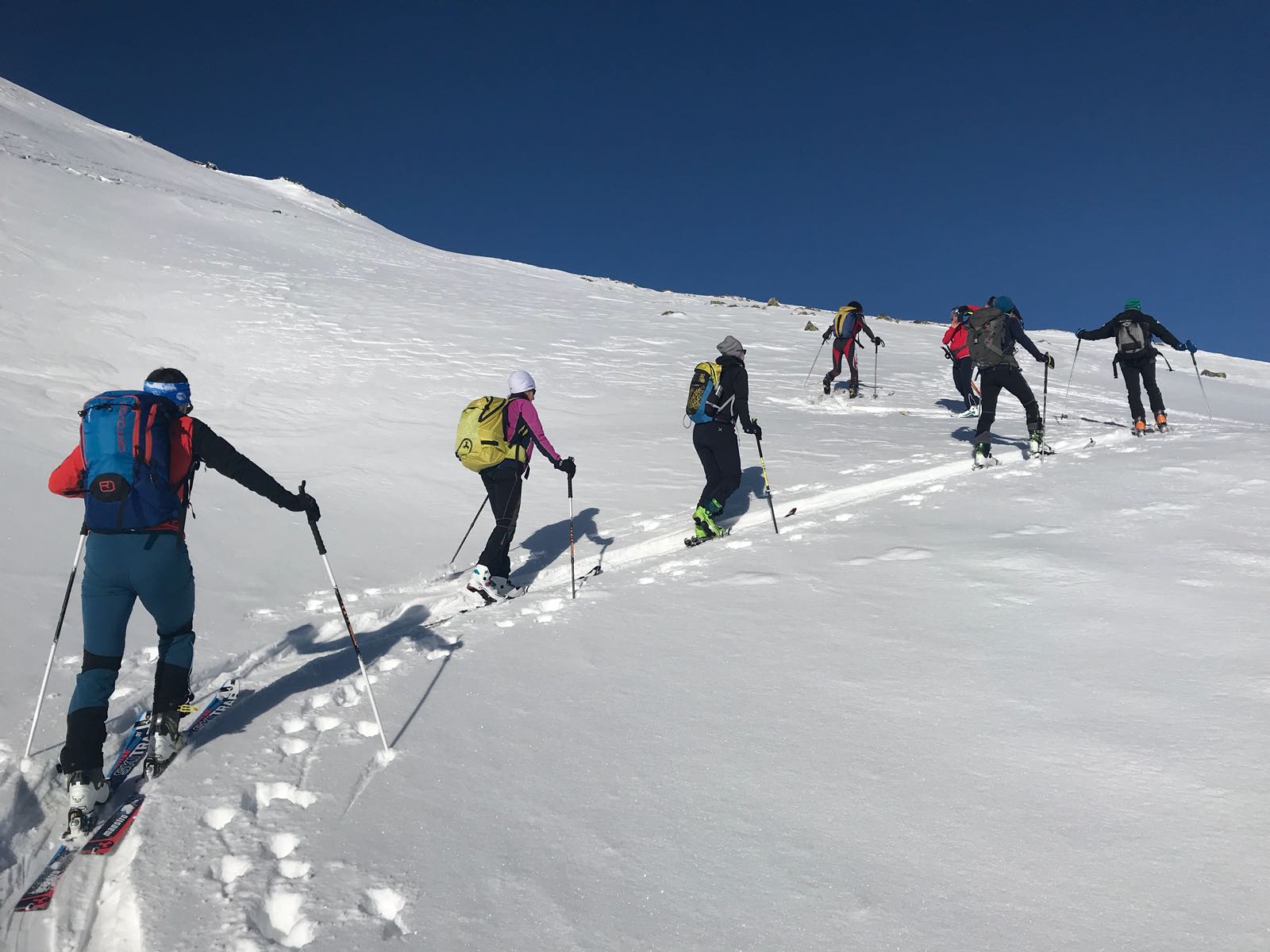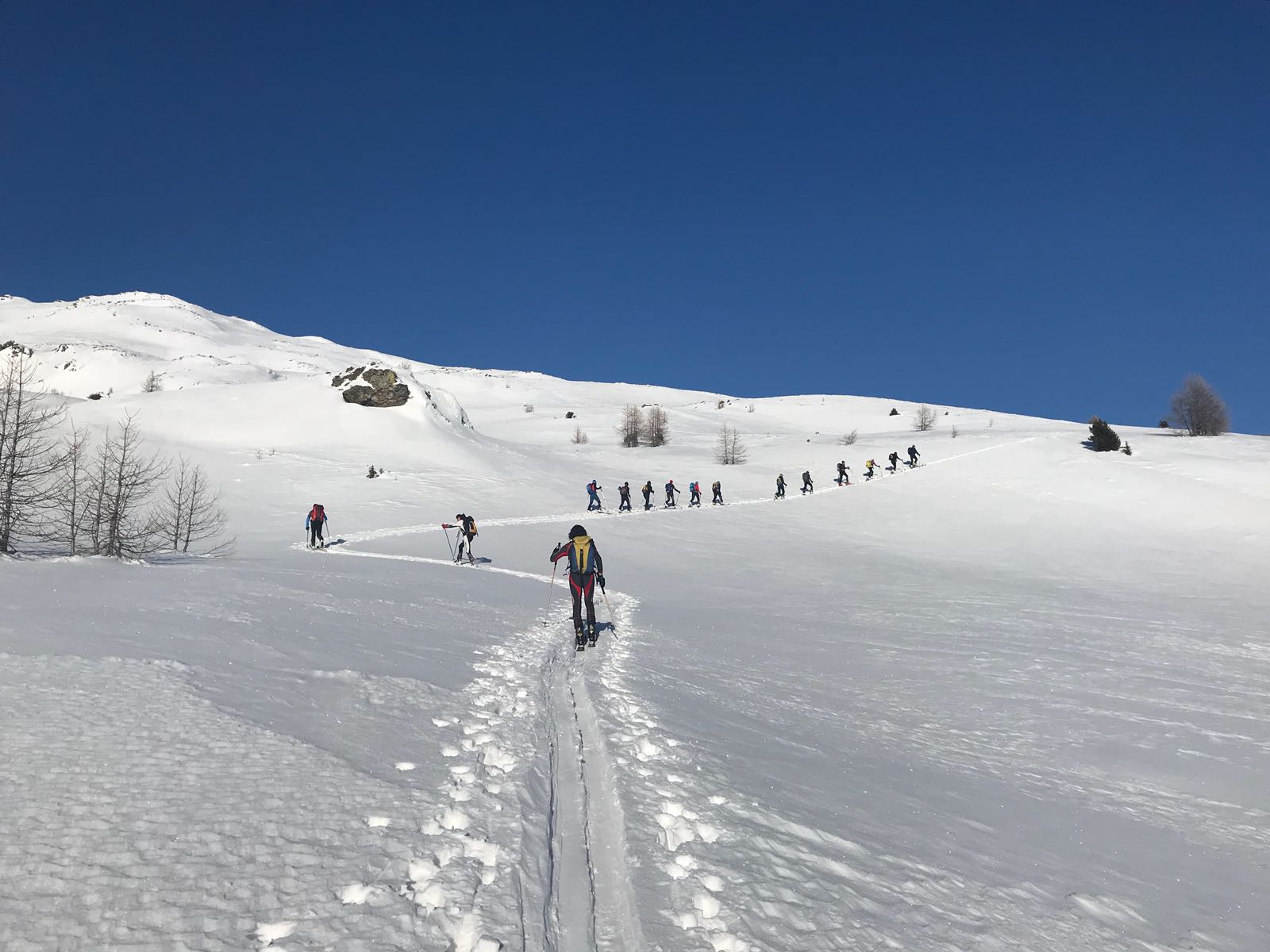 Iniziata la stagione scialpinistica del Cai Valfurva con un itinerario bello e con un tempo stupendo. L’appuntamento era alle 8.30 di domenica alla sede del Cai Valfurva. Dopo il parcheggio alla frazione di Arnoga, inizio della salita sulla pastura che porta fino alla Cima della Motta Grande a metri 2702. Una salita con neve buona, itinerario interessante. Dopo le foto di rito la discesa per un canale più a destra verso il Monte Sattaron con neve fantastica, sciabile dalla cima al parcheggio.