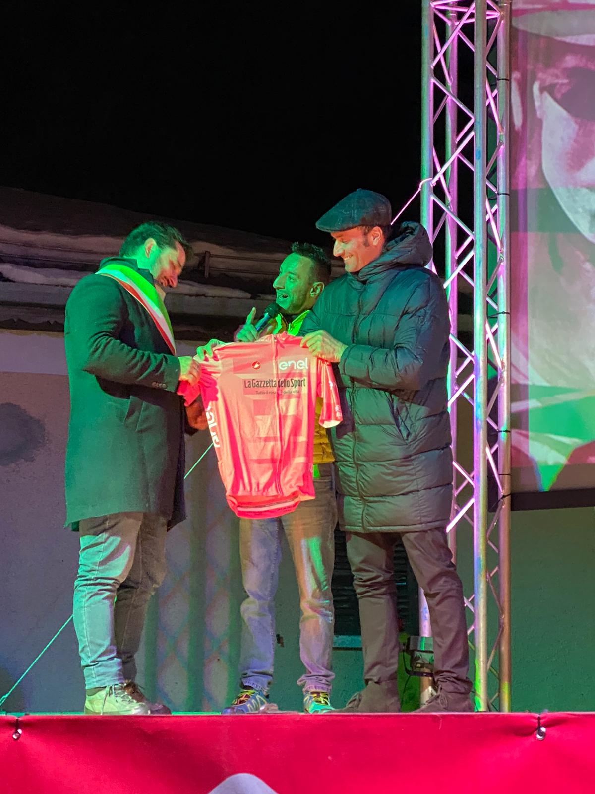 Lo stesso Basso è stato protagonista di un simpatico siparietto con il sindaco terminato con la scommessa sul vincitore della tappa di Cancano: in caso di pronostico azzeccato entrambi faranno in bici la salita all’ombra delle Torri di Fraele. L’ospitalità in questi giorni è stata ricambiata dal campione varesino che ha donato alla cittadinanza una maglia rosa autografata, momento che ha fatto da prologo al tradizionale spettacolo pirotecnico. La serata con il brindisi organizzato dal locale gruppo alpini si è conclusa con un folto numero di persone che ha avuto l’occasione di fotografarsi con il trofeo del Giro e con un disponibilissimo Ivan Basso che non ha mancato di accontentare tifosi e turisti con un immancabile selfie.