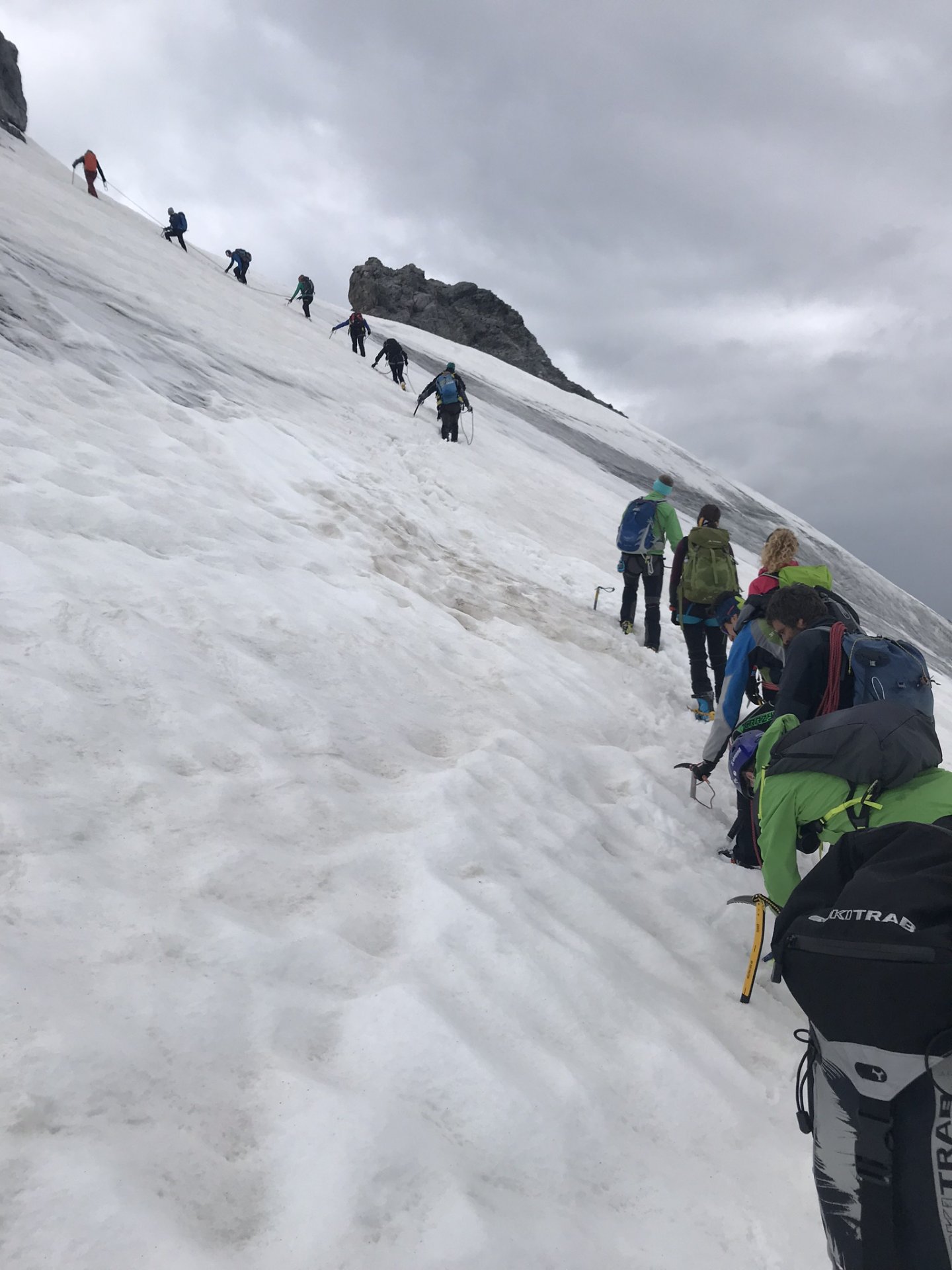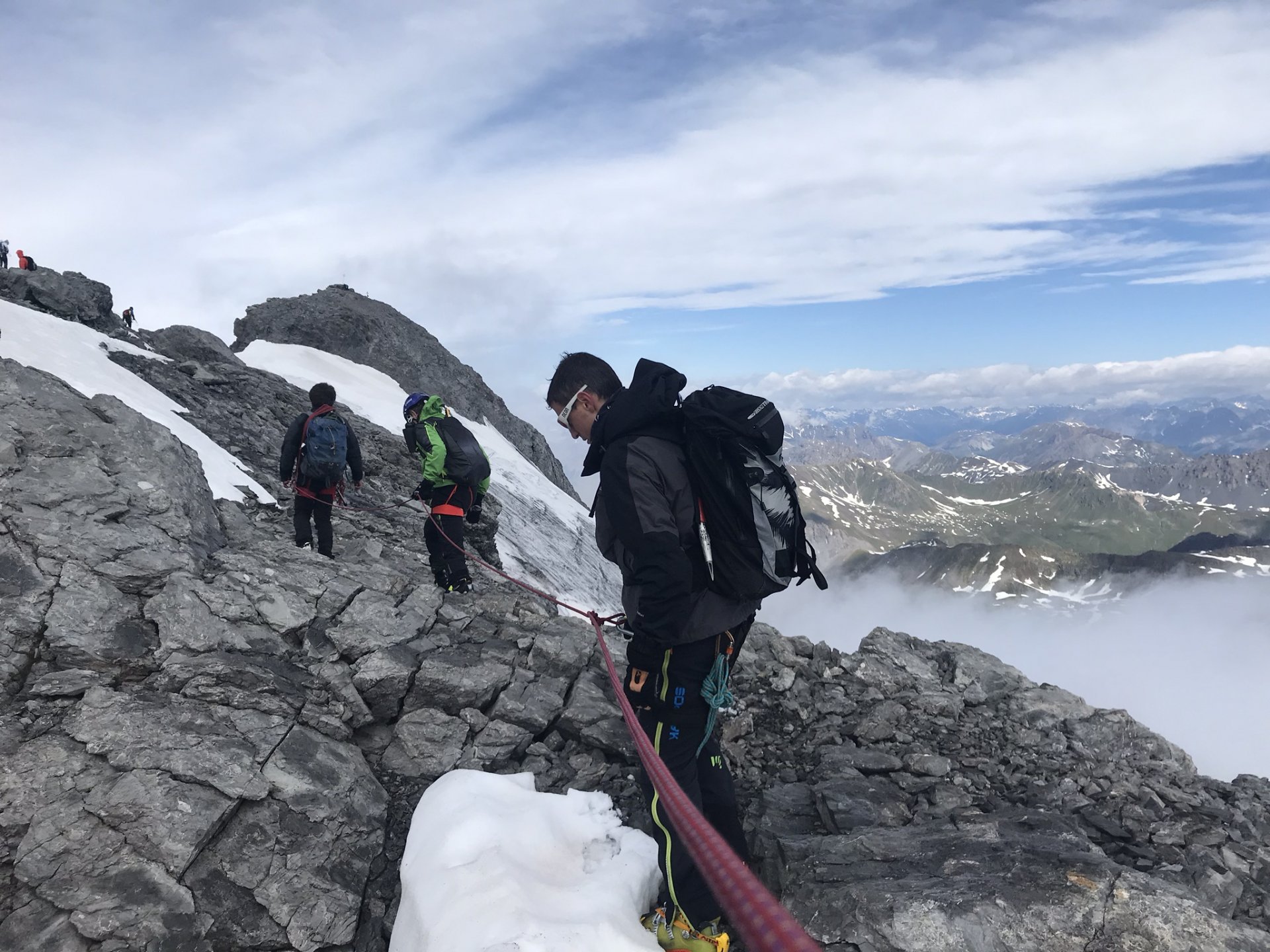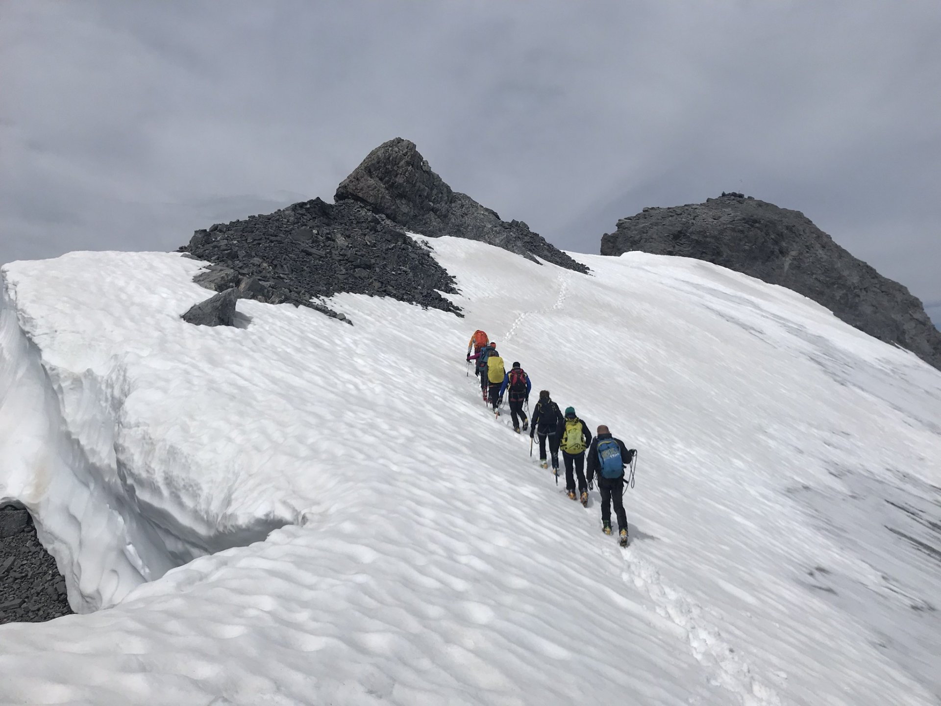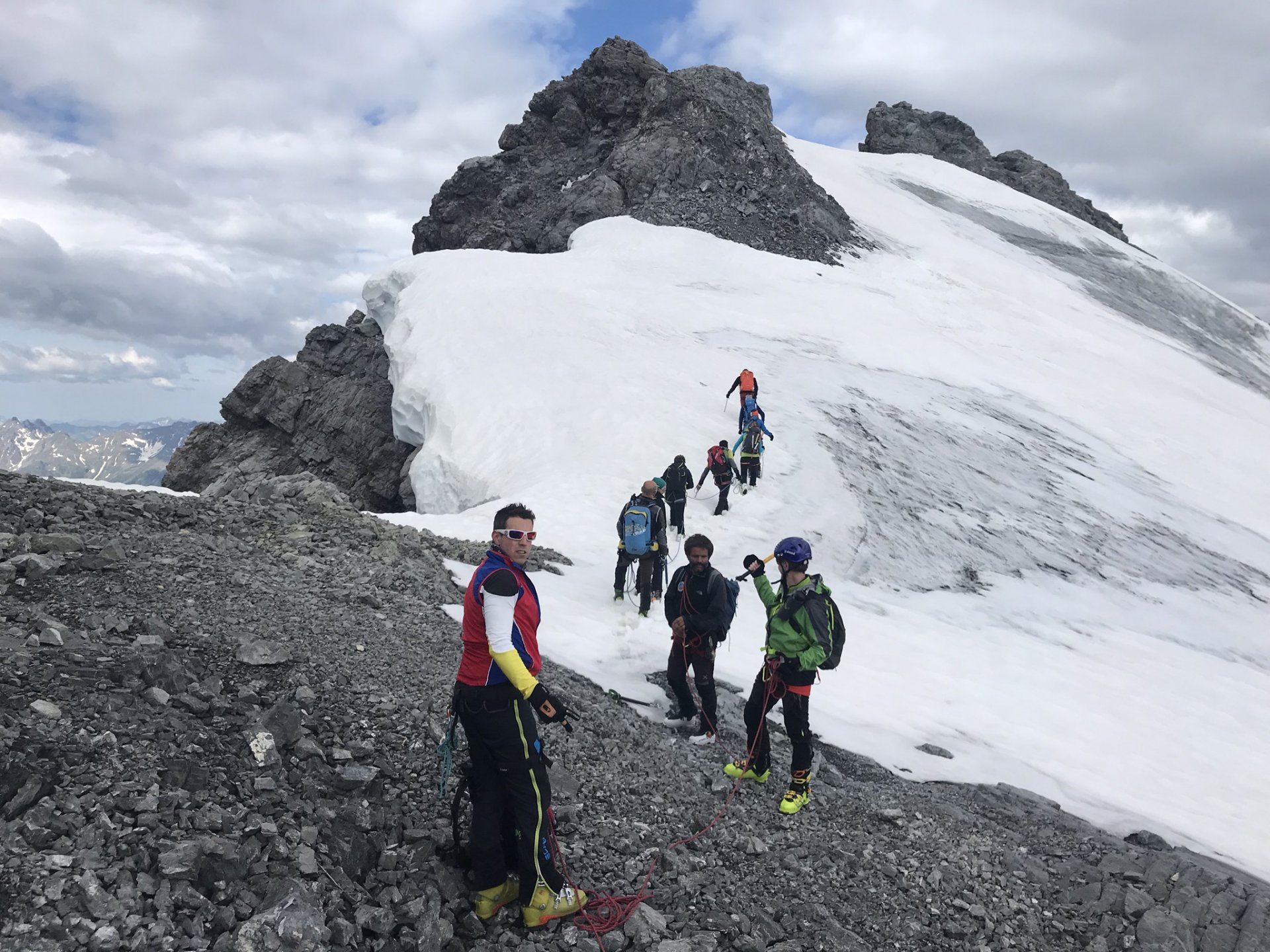 La partenza dalla sede Cai era fissata domenica alle ore 6, con le auto i soci hanno raggiunto il passo dello Stelvio, poi con gli sci e pelli di foca sul ghiacciaio del Livrio fino al Sasso Rotondo. Poi le roccette della cresta in cordata con i ramponi perchè ci sono tratti di neve e ghiaccio. Il meteo che in partenza era buono si è coperto e per 5 minuti è addirittura nevicato, poi di nuovo il sole. Alle 11 comunque tutto il gruppo ha raggiunto la cima del monte Cristallo, metri 3431. La discesa per la stessa via di salita fino al Sasso Rotondo e da lì con gli sci fino al passo dello Stelvio ancora tutto innevato.