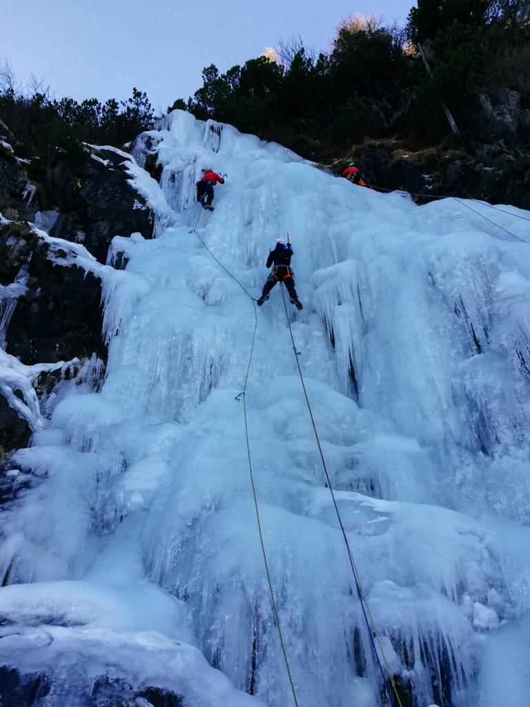 Soccorso alpino, esercitazione su cascate di ghiaccio