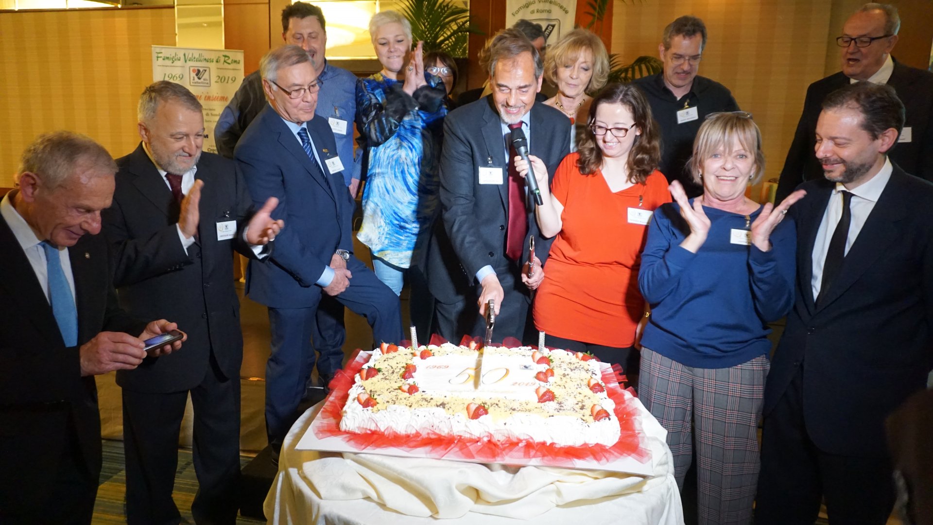 Grande emozione tra tutti i presenti mentre un video, proiettato su schermo gigante, raccontava attraverso foto storiche, di generazione in generazione, 50 anni di storia dell’Associazione e dei Valtellinesi a Roma. Il taglio finale della torta, con logo della Famiglia Valtellinese di Roma, da parte del Presidente Ghislanzoni, attorniato da tutto il Consiglio, è stato salutato da lunghi applausi dei presenti. La tradizionale lotteria di beneficenza, il cui montepremi era costituito prevalentemente da prodotti tipici della nostra Provincia, ha riscosso un grande successo. La somma raccolta sarà anche quest’anno devoluta ad associazioni o enti operanti a scopo benefico in Valtellina o comunque collegati alla Valtellina.