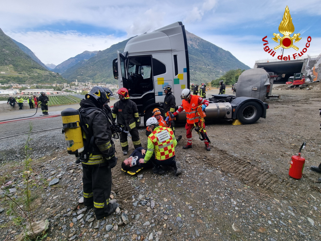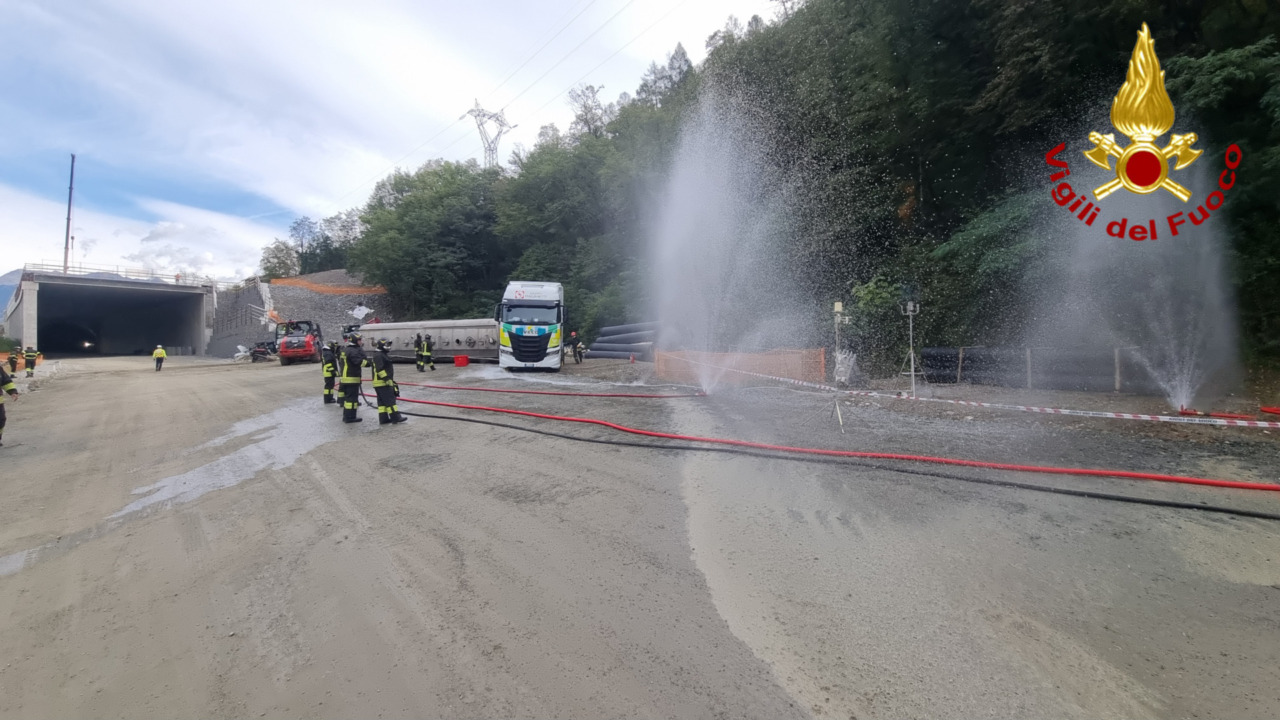 Tirano (SO) – Sulla variante della SS36 è stato ricreato lo scenario di uno smottamento con il coinvolgimento di più automezzi incidentati, tra cui uno alimentato a GNL. L’intervento prevede l’impiego di mezzi da movimento terra e delle risorse NBCR (Nucleare, Biologico, Chimico, Radiologico) del Comando di Sondrio, chiamate a mettere in sicurezza il veicolo ribaltato.