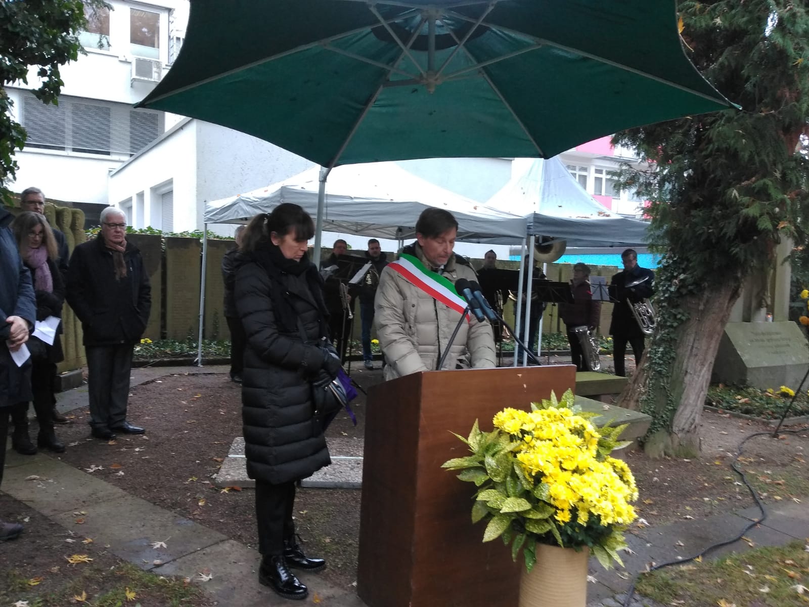 “Ogni occasione di incontro tra la comunità di Sondrio e Sindelfingen rinsalda i legami del nostro gemellaggio – ha detto Lorenzo Grillo Della Berta -. Esprime una amicizia che dura ormai da decenni e che si basa non solamente sul turismo, sugli scambi commerciali, sulle attività produttive. La nostra amicizia, la nostra vicinanza si esprime anche in quei concetti fondamentali per tutti gli uomini che sono l’uguaglianza, la giustizia, la libertà. Per tutto questo vi siamo particolarmente vicini nella commemorazione di tutte le vittime di tutte le guerre, e di tutti coloro che hanno sofferto ed hanno dato la vita per gli ideali della libertà e della democrazia. Quest’anno, nel trentesimo anniversario della caduta del Muro di Berlino, questa commemorazione assume un particolare significato perché ci ricorda come in un tempo non troppo lontano ingiustizia, divisioni e prevaricazione fossero ancora ben presenti all’interno del continente europeo”.