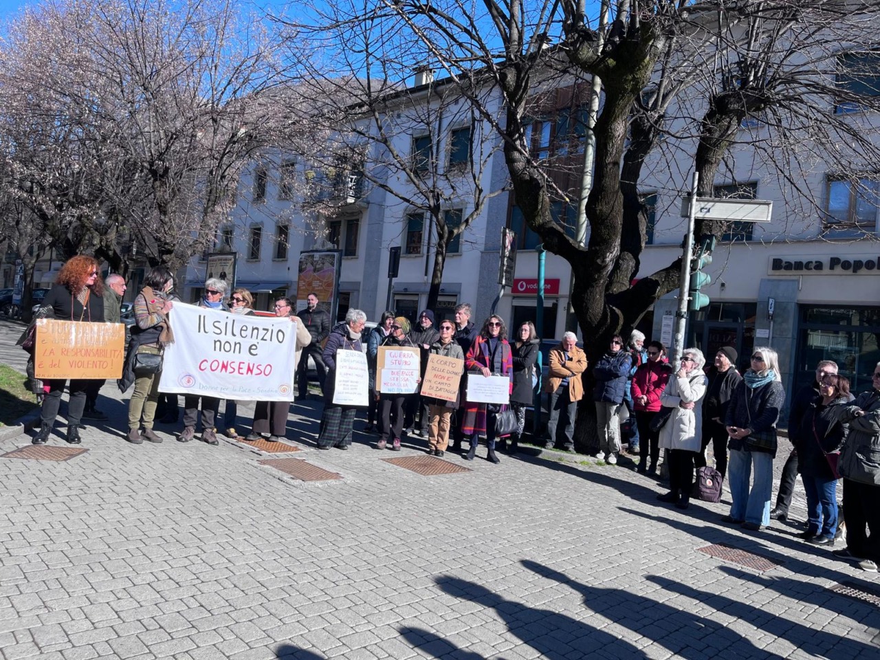 Si è svolto questa mattina alle ore 11 in Piazzale Bertacchi il presidio promosso a livello nazionale dall’associazione D.I.Re – Donne in Rete contro la violenza, nell’ambito della mobilitazione contro la proposta di modifica dell’articolo 609 bis del Codice penale, nota come DDL Bongiorno.