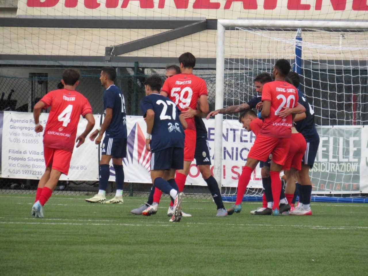 Sull’altro fronte mister Marco Sgrò dava fiducia ai suoi giocatori più esperti, come Ravasi, Perrotti, Lancini e D’Amuri, ex di turno per aver giocato e vinto sul campo bergamasco coi biancazzurri nell’ultima sfida giocata nel settembre 2019.