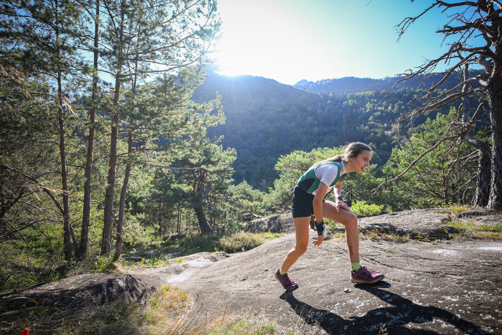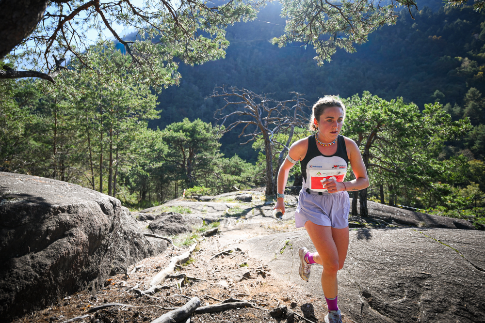 Il nuovo tracciato di venticinque chilometri e 1000 metri di dislivello positivo, che attraversa l’intera Val Bregaglia, accoglie e incanta gli atleti, gli accompagnatori e chi tifa lungo il percorso. Alla partenza da Promontogno, sulle montagne svizzere a 832 metri slm, la gara è cominciata con una salita che ha portato i runner fino a Soglio, riconosciuto come il villaggio più bello della Svizzera e della Val Bregaglia, un piccolo borgo autentico e incontaminato dalle case totalmente in pietra e legno e palazzi nobiliari, dove il tempo si è fermato. Qui Vivien Bonzi è in testa, ma nella discesa da Soglio lascia spazio alla collega di squadra Beatrice Bianchi, fortissima discesista, e da qui in poi la gara rimarrà sua fino alla fine.