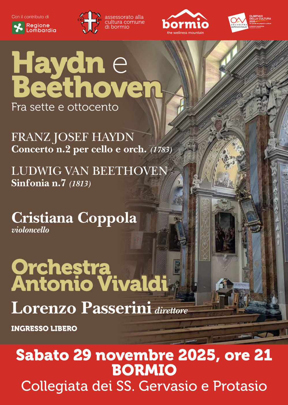 Il successivo Sabato 29 novembre ore 21 sarà la Collegiata dei SS Gervasio e Protasio di BORMIO ad accogliere l’Orchestra Antonio Vivaldi al gran